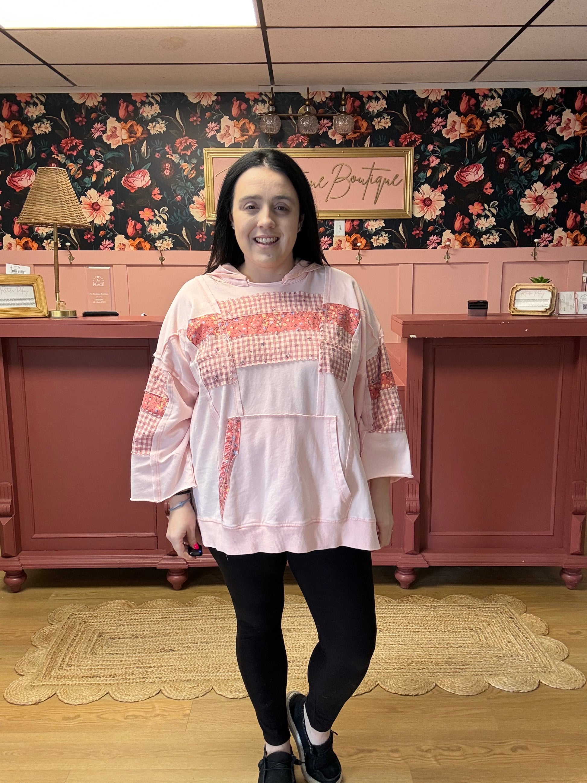 3/4 Sleeve Patchwork Hoodie