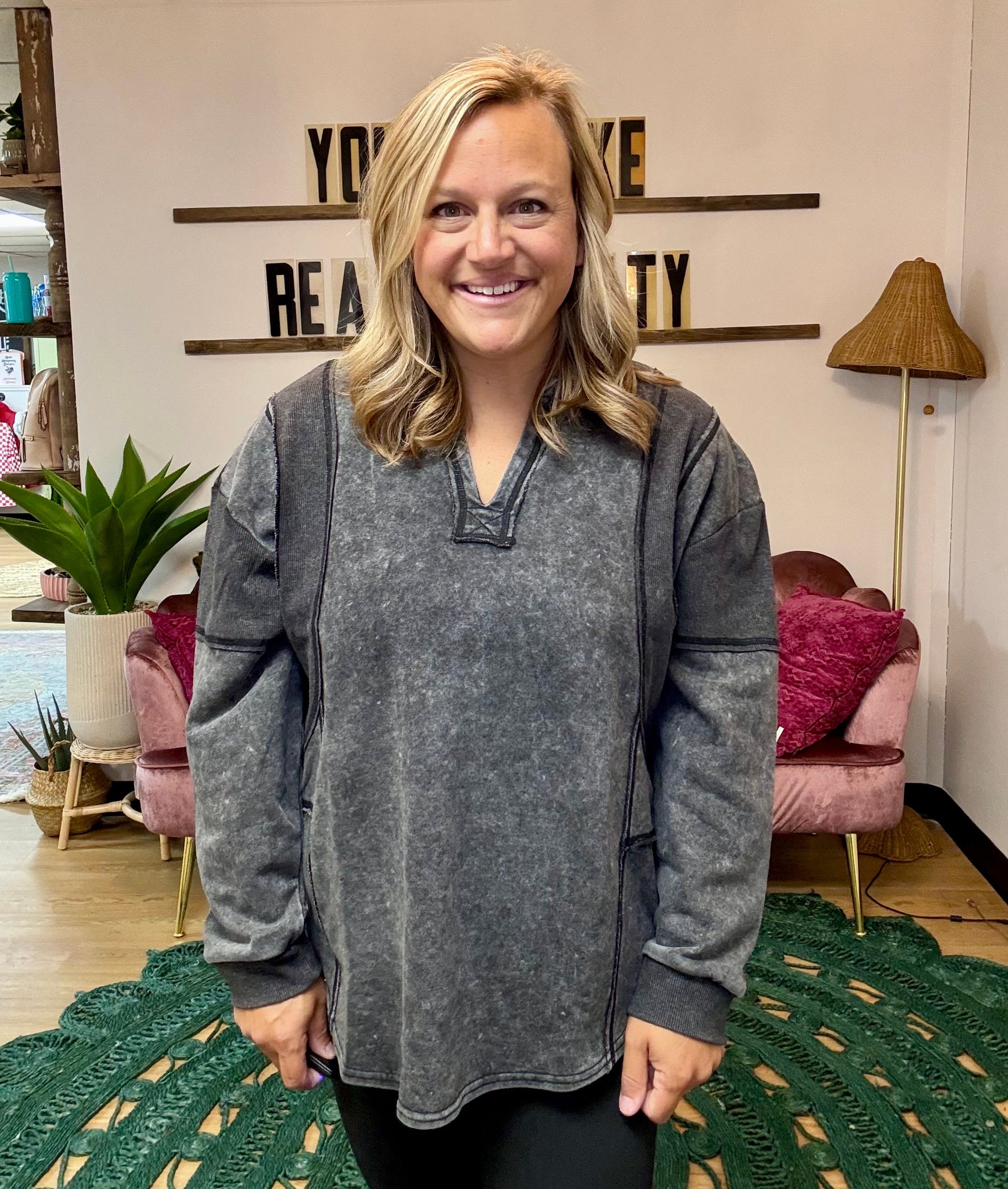 Acid Wash Collared Pullover - Black