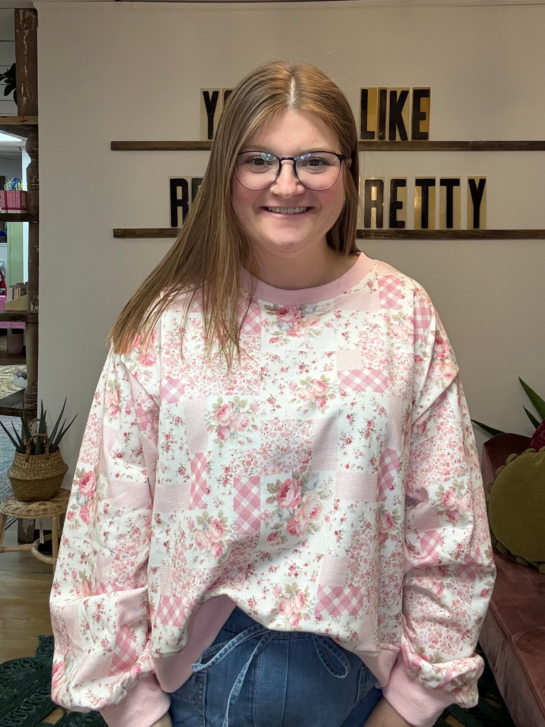 Look how cute! Perfect for Spring weather - fits oversized. Taylor typically wears a M or L and she is wearing a medium here. She could also size down to a small for a more fitted look if you prefer that.