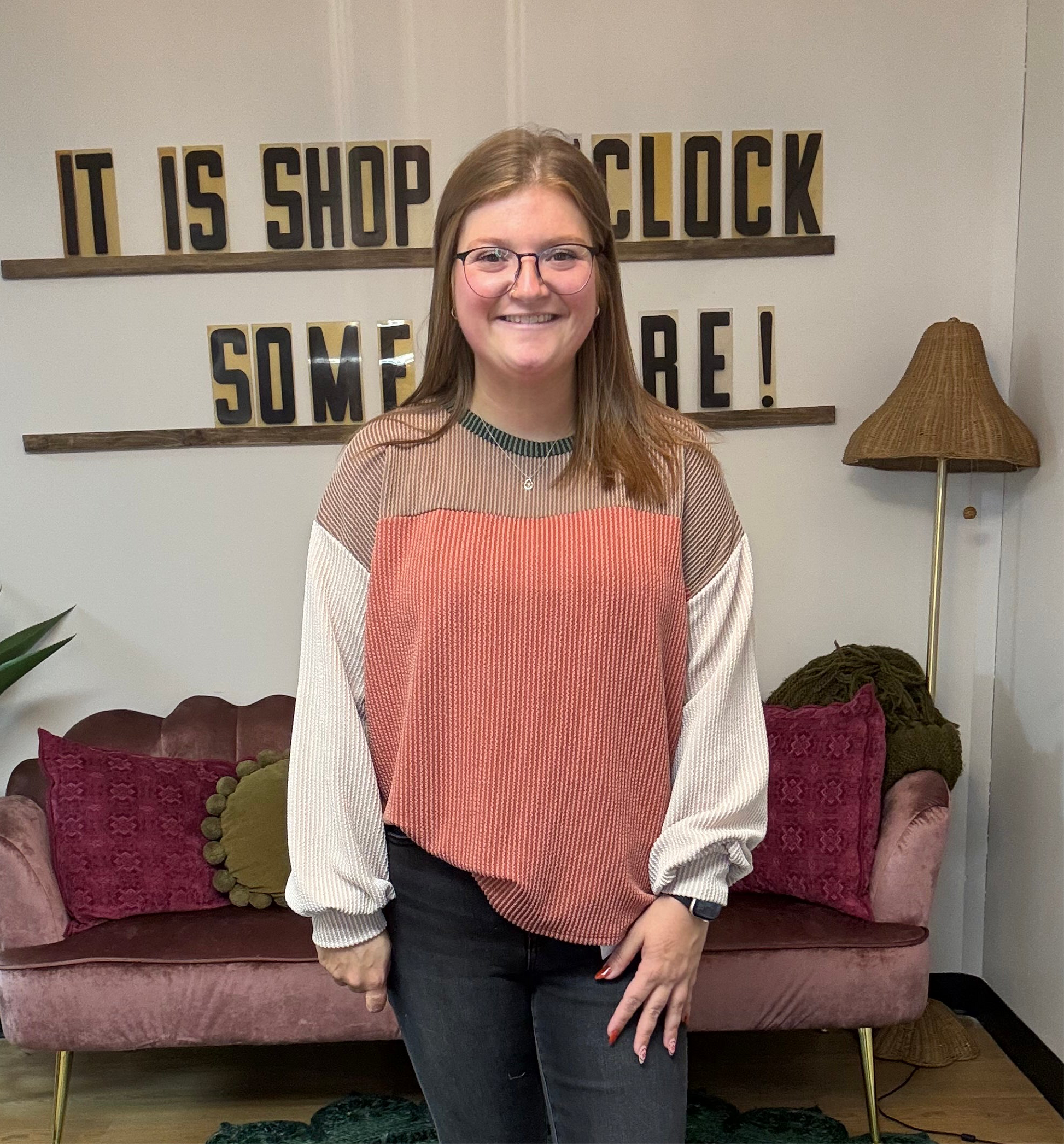 Perfect color combo for fall in lightweight, ribbed fabric! You will love it! Fits true to size
