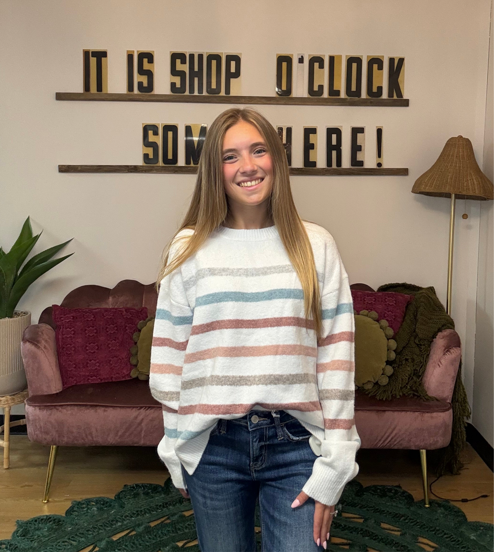 Get ready to fall in love (pun intended) with our Loose Fit Striped Sweater! This must-have for the autumn season is both stylish and comfortable, making it perfect for all your fall festivities. Stay cozy and trendy with this sweater that will quickly become your favorite piece of seasonal wear. Fits true to size