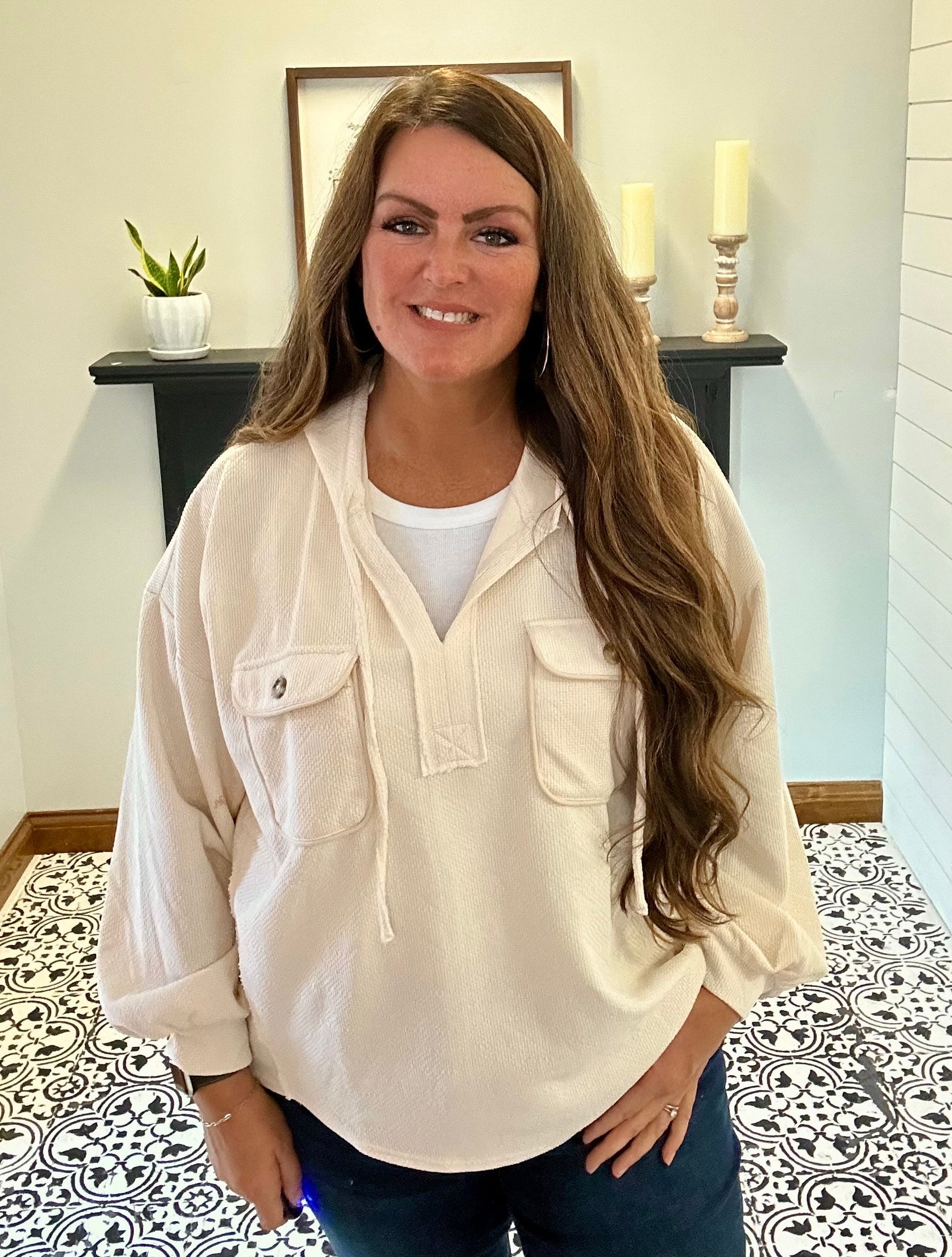 These hoodies are so adorable - lightweight and cozy! Fits true to size. Liz is wearing a 2x