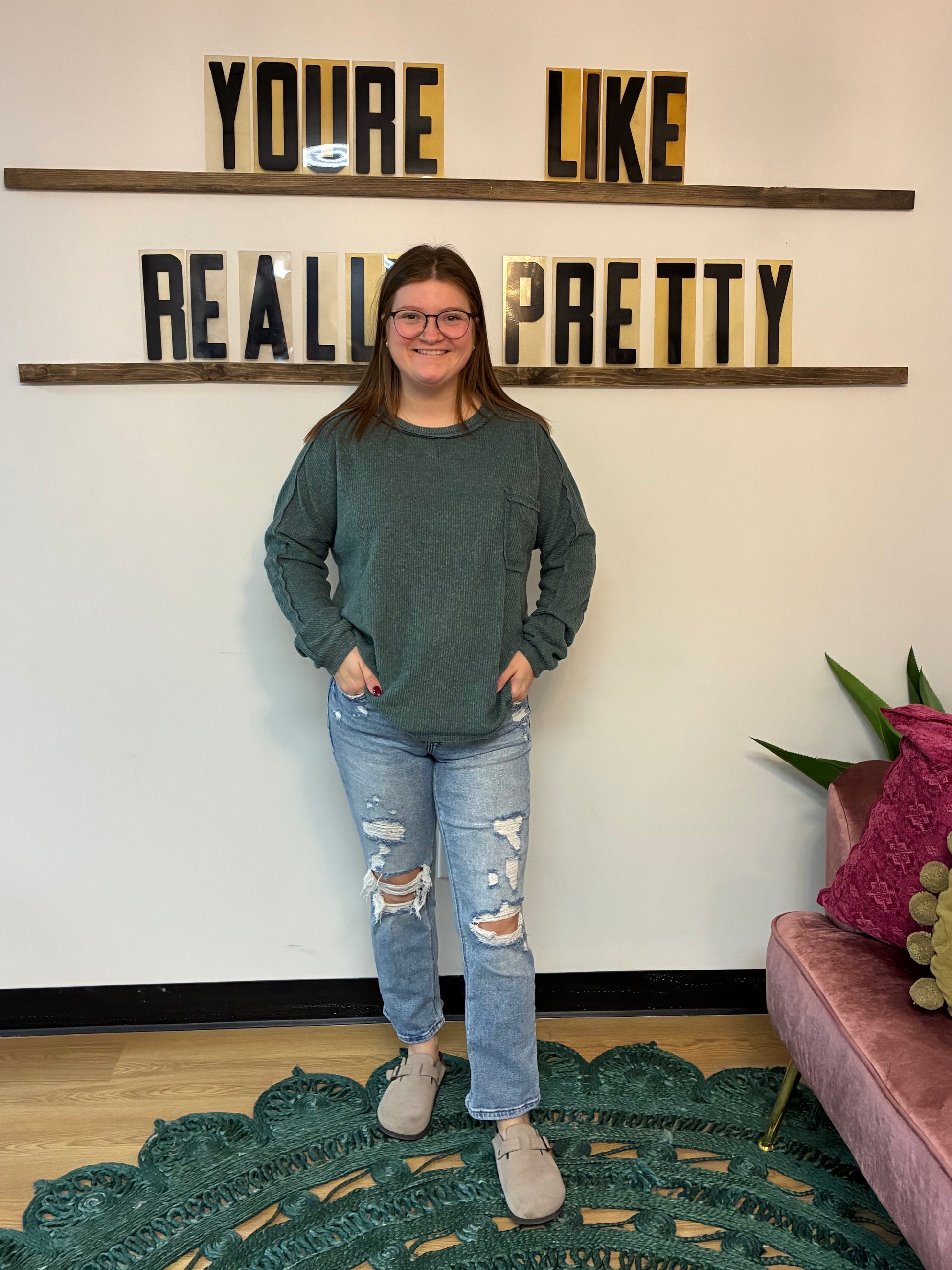 Soft Hi-Low Ribbed Pullover - Ash Jade