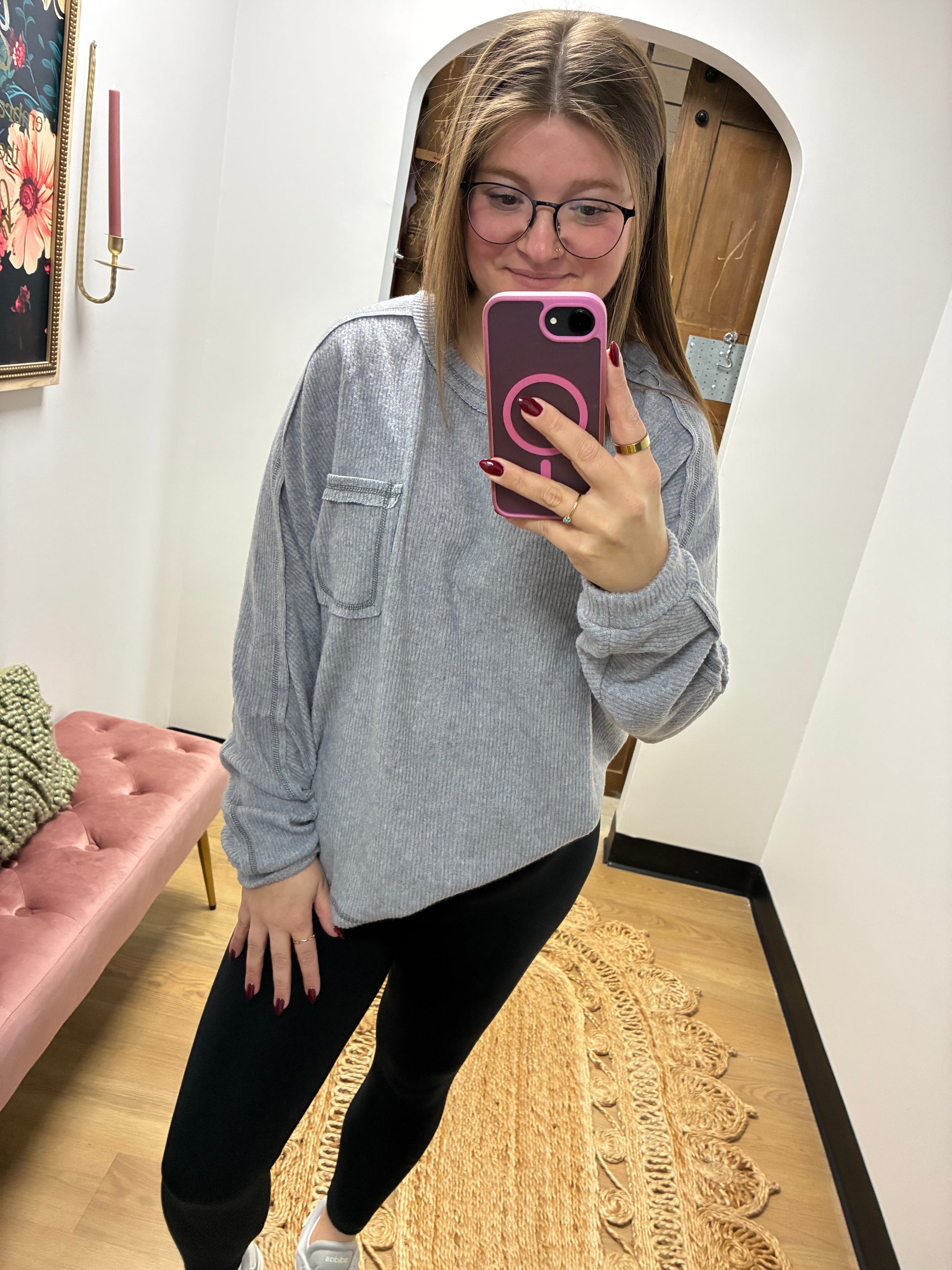 Soft Hi-Low Ribbed Pullover - Heather Grey