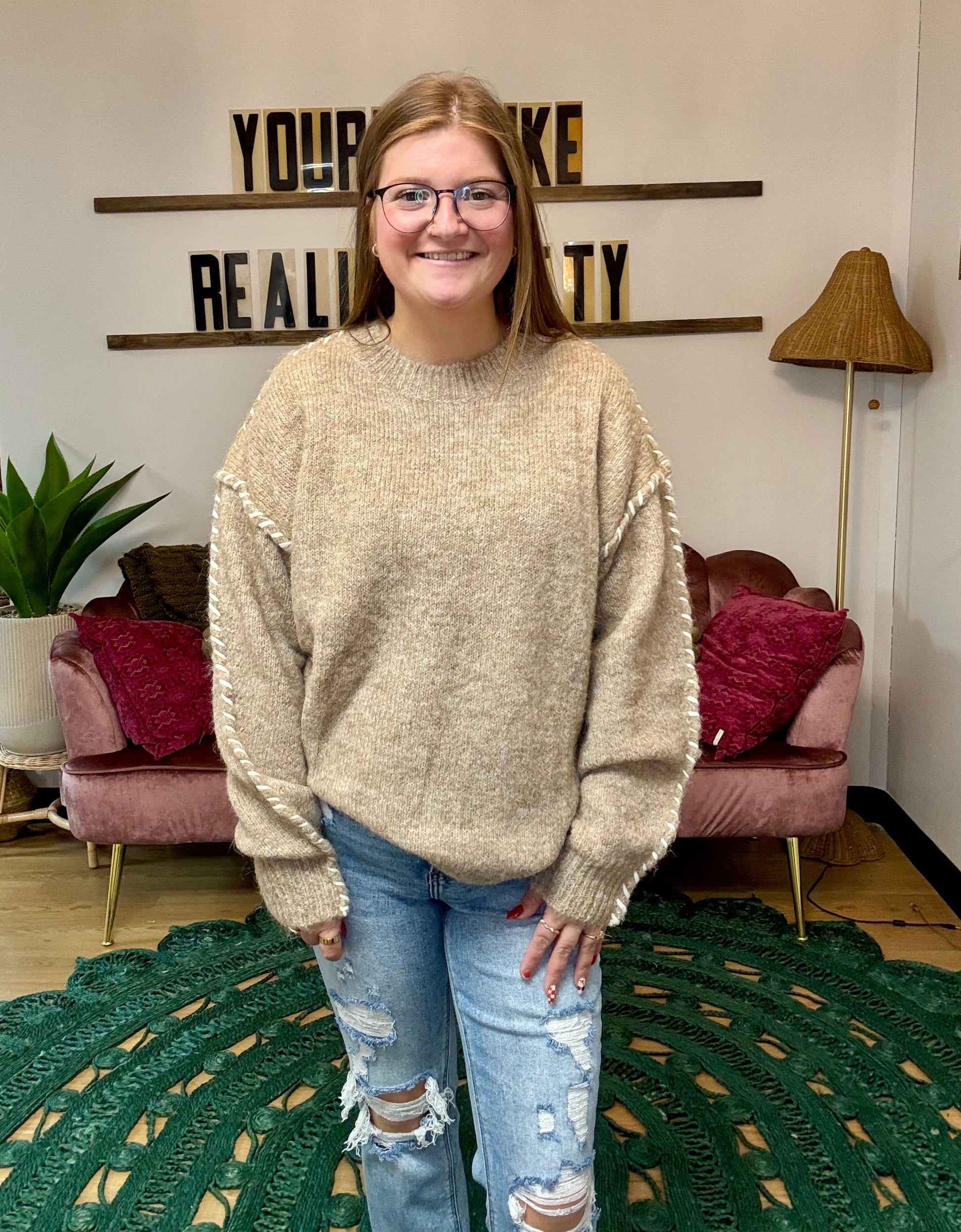 Stitch Detail Knit Sweater - Khaki